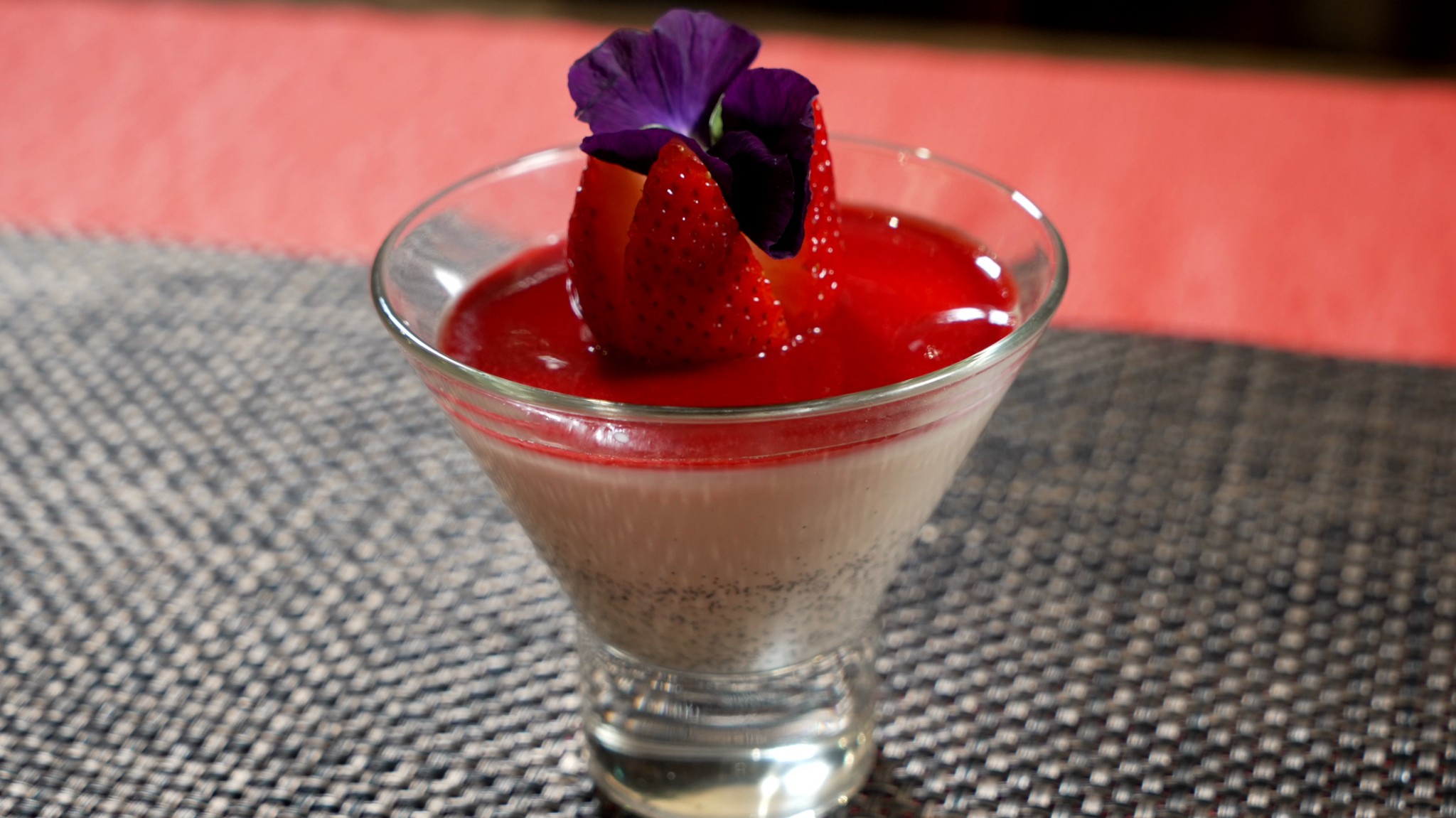 濃厚なパンナコッタにストロベリーソースの酸味が